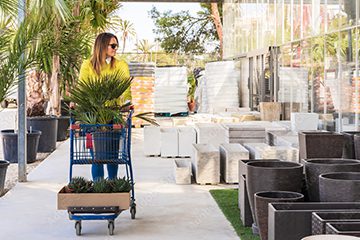 Der Kunde wählt große Pflanzen im Außenbereich aus, die Zahlung erfolgt